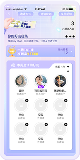 无限畅聊,优先推送,解锁更多权限,让更多的人看到你。专属图标彰显身份,让你在KeyChat的世界自由翱翔。