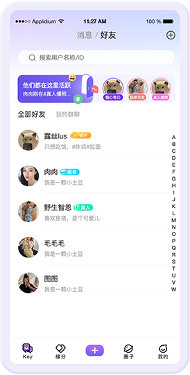 忙碌一天累了吧,是时候来KeyChat歇歇脚了,幽默风趣的朋友随时都在等着你互诉生活的不愉快。